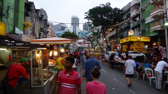 We walked along Jalan Alor on a Friday night soaking it all in–the smells, the food, the culture, the chaos. Afterall, Jalan Alor is THE street in Kuala Lumpur, Malaysia to experience street food. It is one big cultural smorgasbord of Asian ethnicities, all hawking their foods on one street. As we walked along trying to figure out what we were brave enough to eat, I looked up and saw something that I hadn’t seen in seven weeks of traveling…
