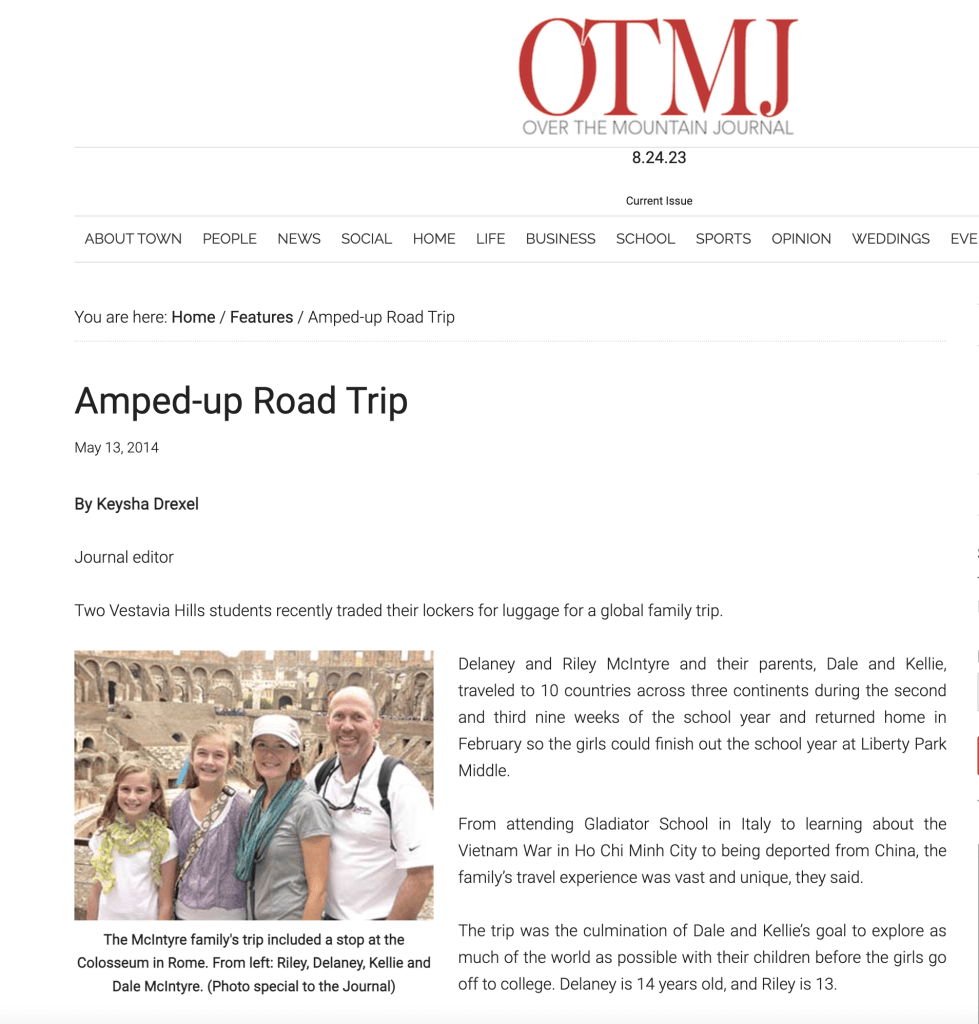 As family “ed-venture” travel advocates, Kellie McIntyre and 4 Worn Passports have been featured in print and online news media, speaking engagements, podcasts, school visits and travel blogs.