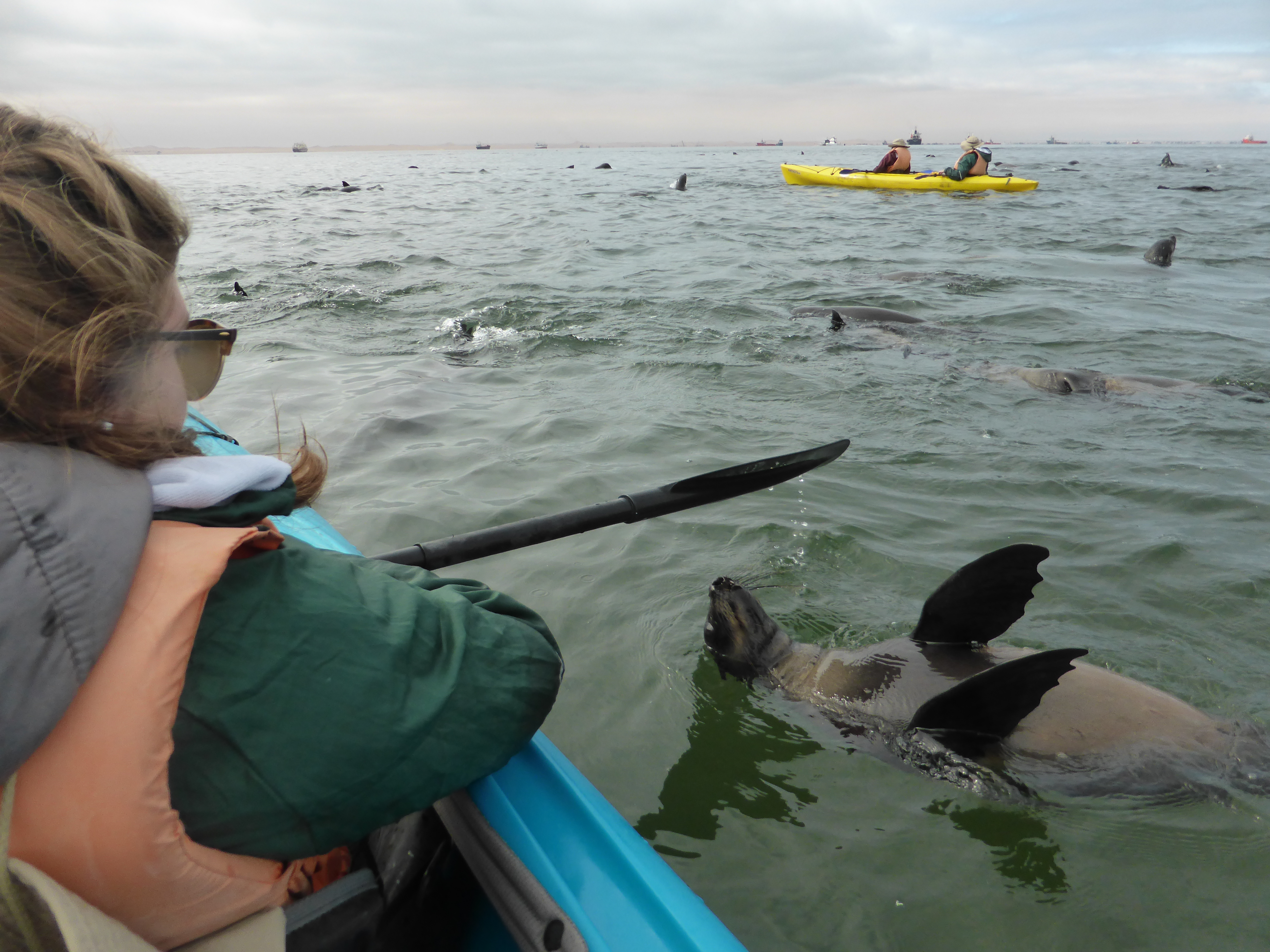 Kayaking with seals at Pelican Point