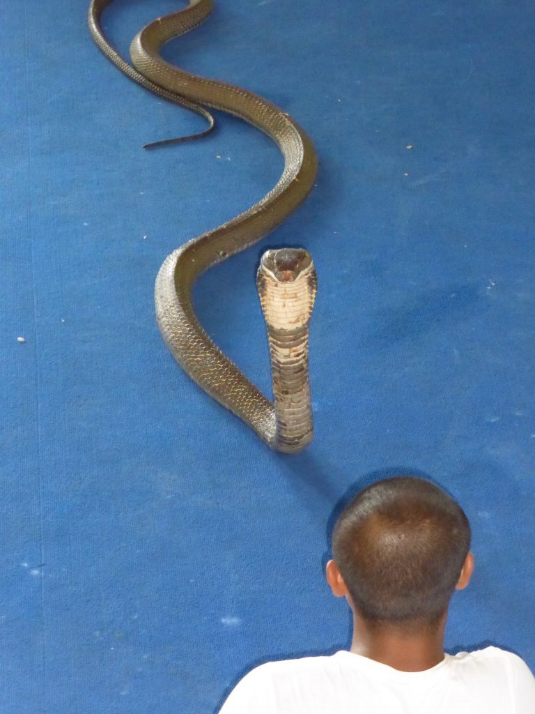 What idiot would provoke the King Cobra on purpose? I wondered to myself as the snake charmer kept trying to set the snake off. He blew in the snake’s face and tapped his fingers trying to get it to attack him, and right as the snake would hiss and strike out, the man would duck out of the way just in time to avoid a trip to the hospital.